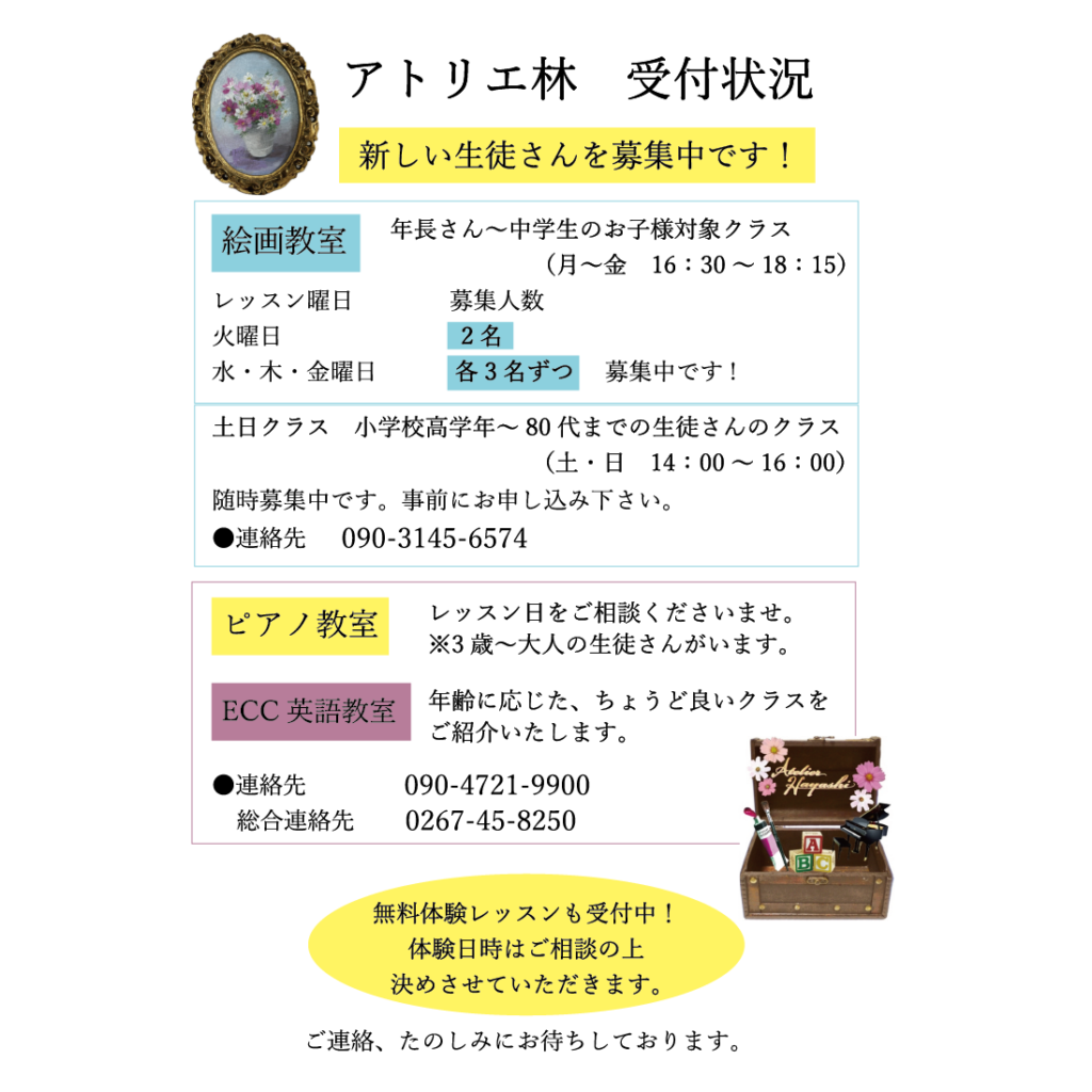 軽井沢の絵画教室・ピアノ教室・ECCジュニア英語教室