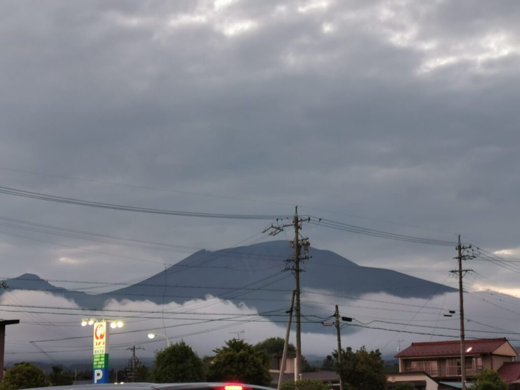 夕方スーパーから見た 浅間山です。 くっきりした、山と雲のコントラストが、見事で した。